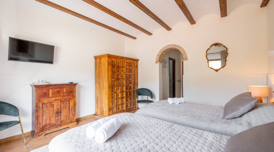 Obiekt oferuje przestronne, stylowo urządzone pokoje z elementami rustykalnego wystroju, basen z widokiem na góry, duży taras wypoczynkowy oraz przytulne wnętrza.
